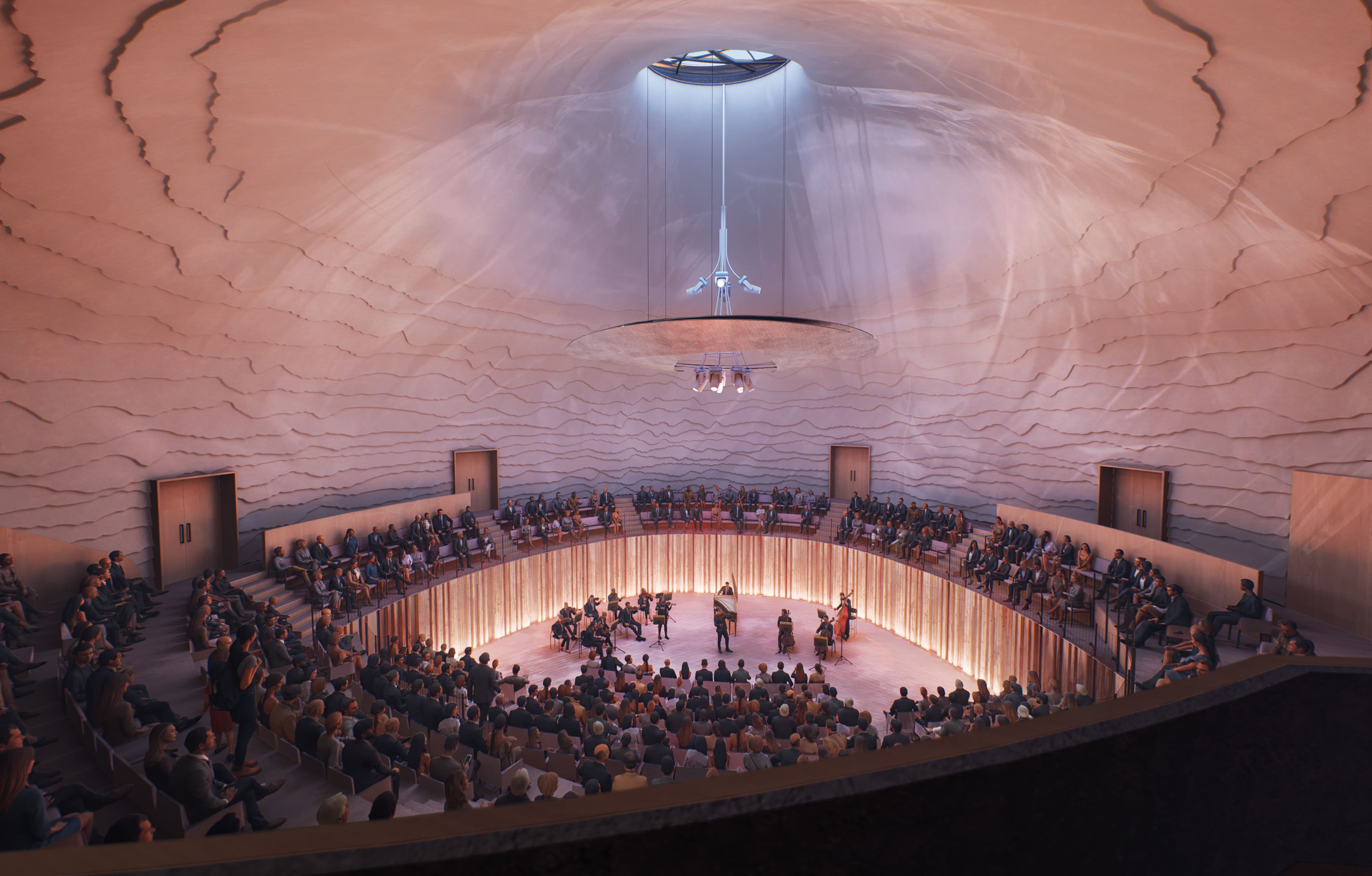 La Source Vive s’inscrit dans un projet ambitieux, impulsé et soutenu par Aline Foriel-Destezet, dont la dimension architecturale n’est qu’une des composantes. Dès 2026, La Source Vive et La Grange au Lac formeront un complexe unifié, dont la vocation est d’être un lieu ouvert, accueillant et stimulant, qui vive et fasse rayonner la musique 365 jours par an. L’institution s’appuiera sur la complémentarité fonctionnelle des deux salles, l’une étant destinée aux grandes formes, l’autre aux formes chambristes, pour proposer une offre programmatique variée et continue sur l’année, où l’on retrouvera les plus grands interprètes de la scène classique internationale. Qu’ils soient de passage le temps d’un concert ou en résidence pour une création, les artistes y trouveront une infrastructure et un cadre sans équivalent dans la région.